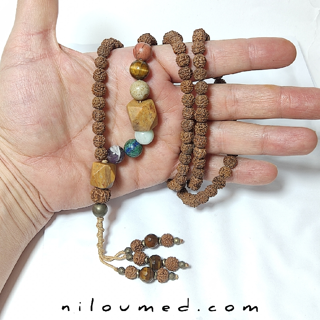 رودراکشا: هسته نوعی میوه شبیه بلوبری است که دارای حافظه ی انرژی بینظیر بوده و با پاکسازی چاکراها و تقویت هالهی انرژی باعث دفع نیروهای منفی میشود و با قرار گرفتن در کنار سنگ ها، باعث افزایش انرژی میگردد. ذکر گفتن با رودراکشا، ارتعاشات هالهی انرژی را افزایش داده و فرد را در مسیر صحیح توسعهی فردی و جذب خواستهها قرار میدهد.