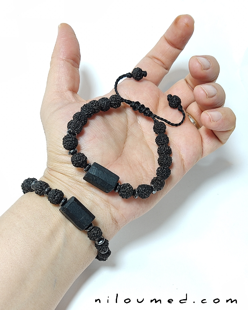 اجرا شده با بلک رودراکشا (رنگ شده با جنای سیاه و روغنهای مخصوص در هندوستان) سایز تقریبی هشت میل