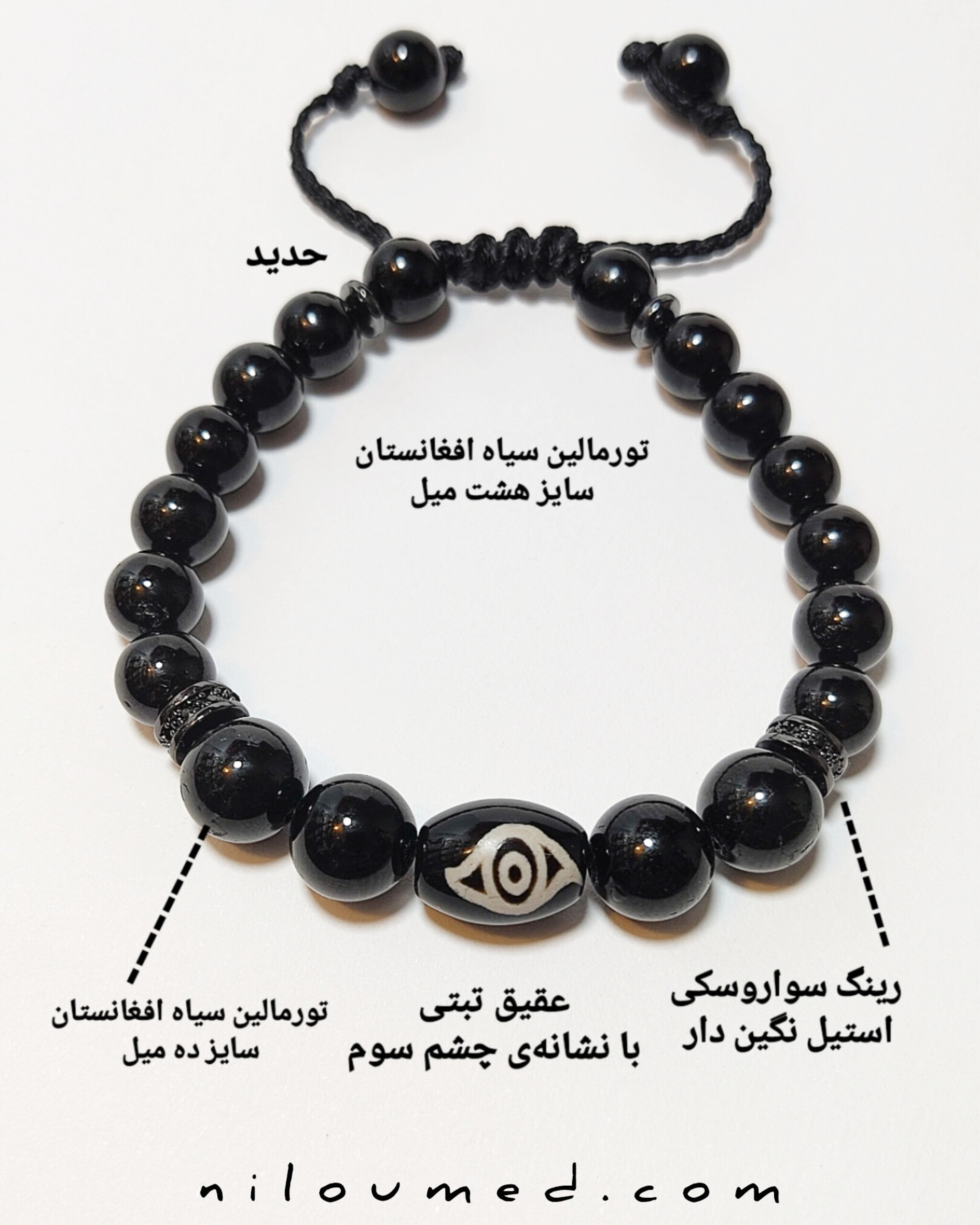 » اجرا شده با تورمالین هشت میل و ده میل و خرج کار سنگ حدید و عقیق تبتی با نماد چشم سوم