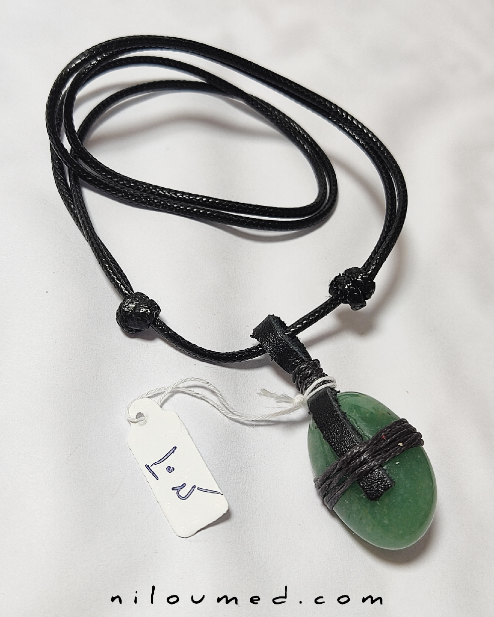 دارای بند چرمی و گره‌ی سرخپوستی و قابلیت تنظیم طول بند گردنبند