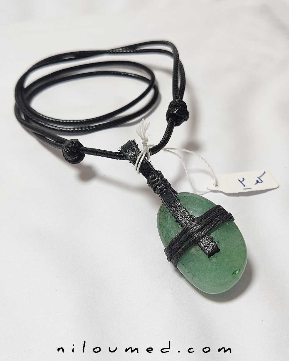 دارای بند چرمی و گرهی سرخپوستی و قابلیت تنظیم طول بند گردنبند