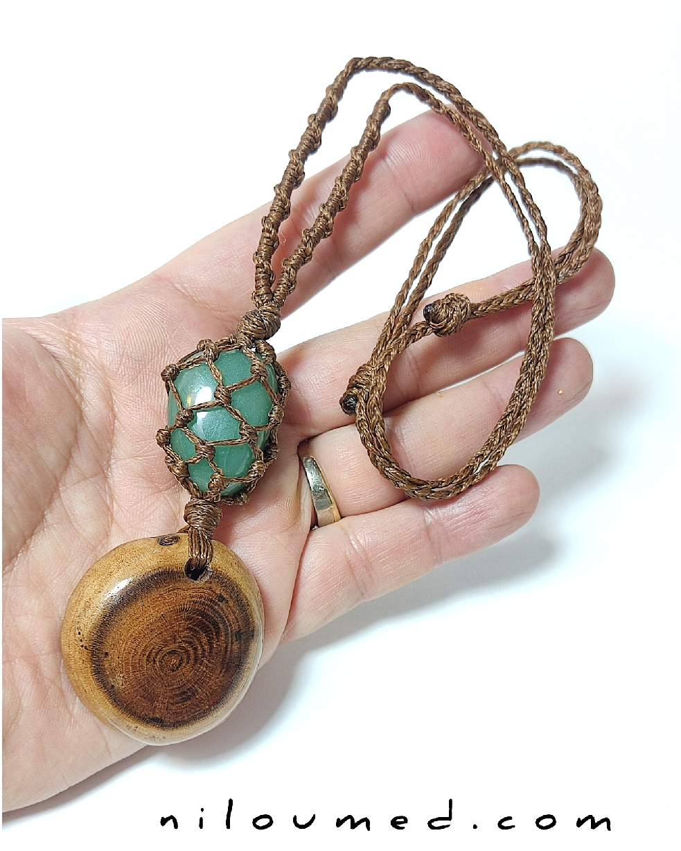 گردنبند چوب و اونتورین سبز نماد خوش شانسی