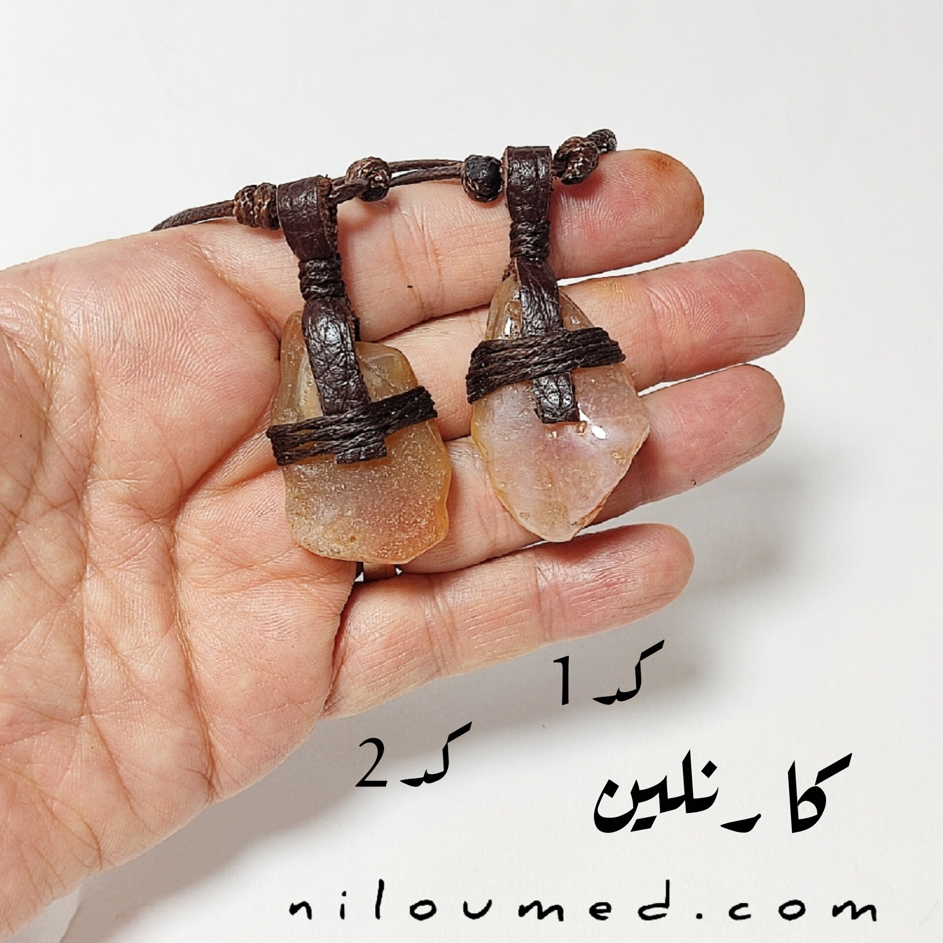 گردنبندها دارای بند چرمی با گره سرخپوستی بوده و طول قابل تنظیم دارند